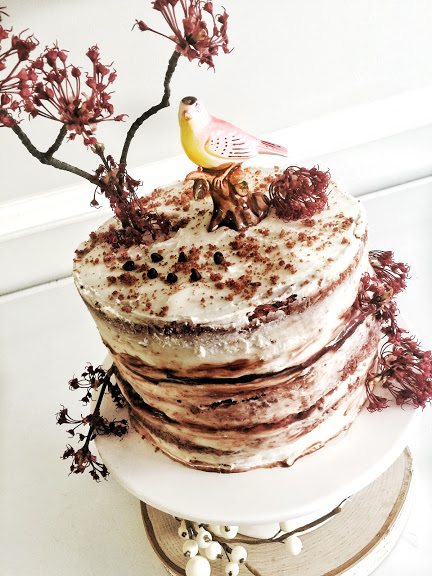 Gluten Free red velvet with raspberry preserves, raspberry curd, and chocolate pudding layers...And iced with buttercream/cream cheese frosting. Oh YUMMMMY!